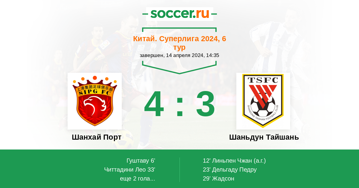 Протокол матча Шанхай Порт против Шаньдун Тайшань