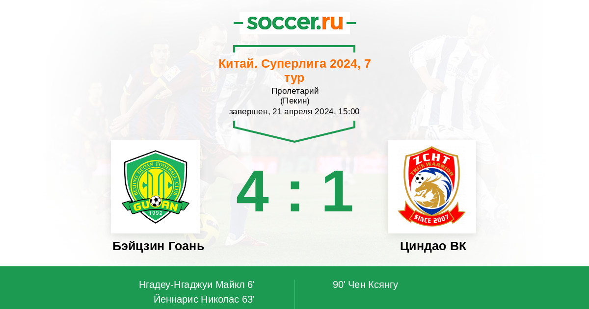 Протокол матча Бэйцзин Гоань против Циндао ВК