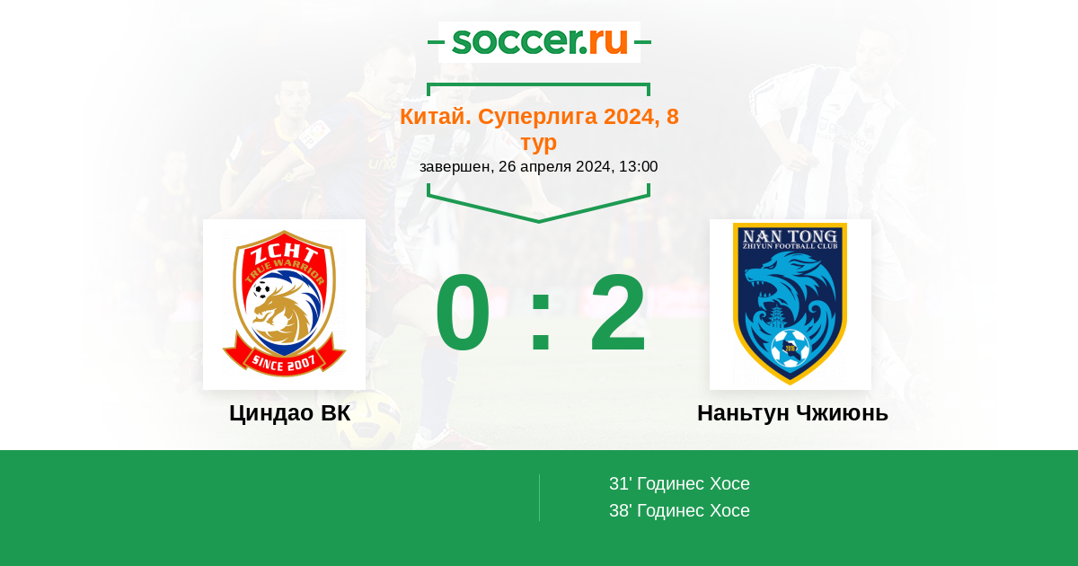Протокол матча Циндао ВК против Наньтун Чжиюнь