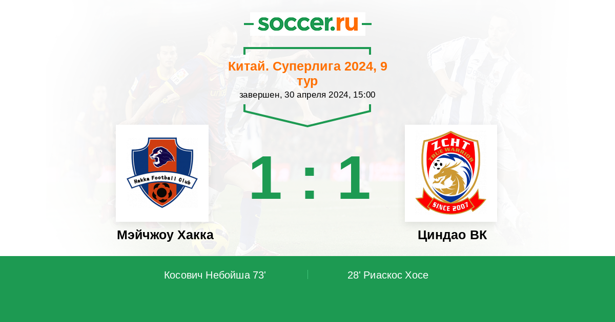 Протокол матча Мэйчжоу Хакка против Циндао ВК