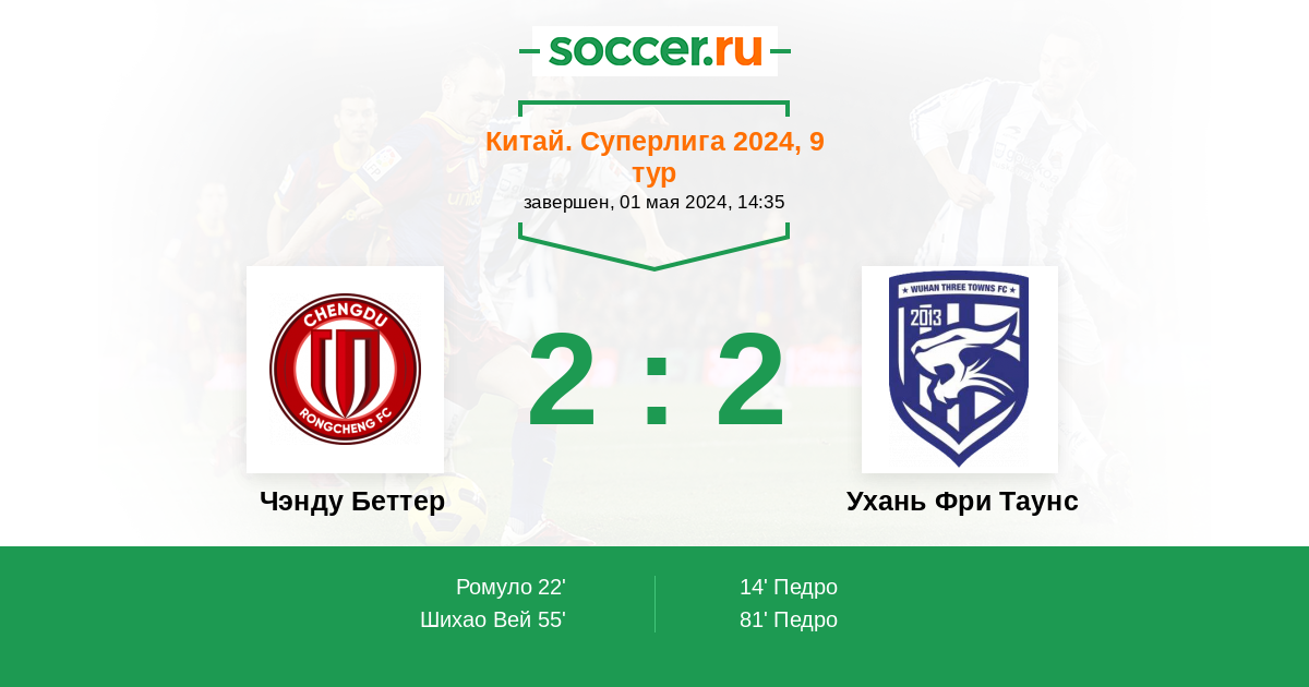 Протокол матча Чэнду Беттер против Ухань Фри Таунс