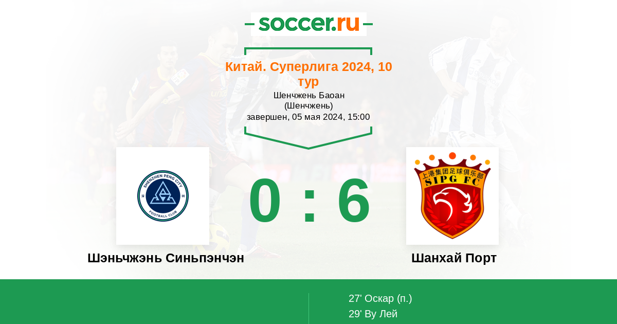 Протокол матча Шэньчжэнь Синьпэнчэн против Шанхай Порт