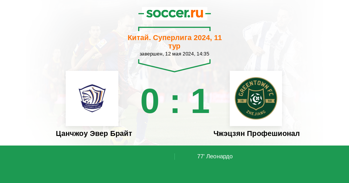 Протокол матча Цанчжоу Эвер Брайт против Чжэцзян Профешионал