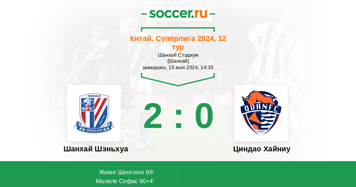 Протокол матча Шанхай Шэньхуа против Циндао Хайниу