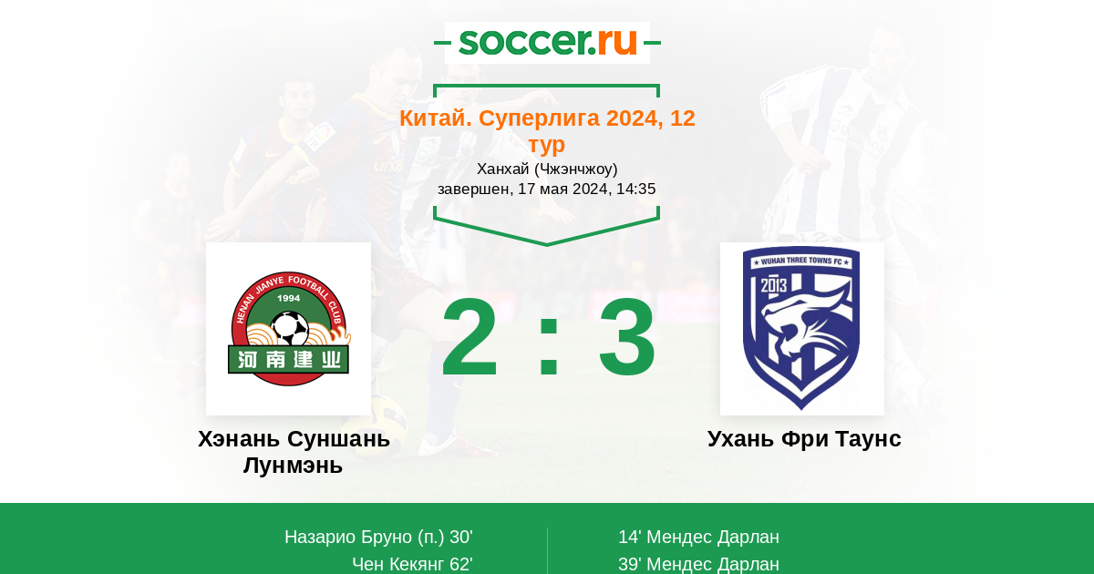 Протокол матча Хэнань Суншань Лунмэнь против Ухань Фри Таунс