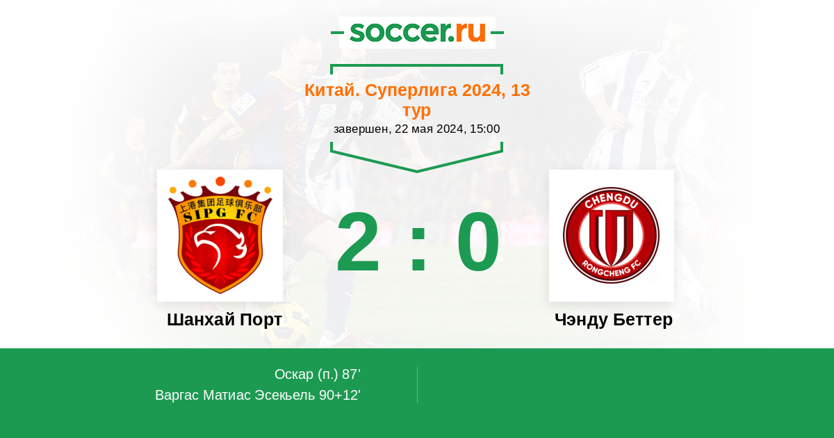 Протокол матча Шанхай Порт против Чэнду Беттер