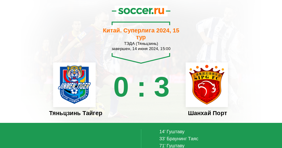 Протокол матча Тяньцзинь Тайгер против Шанхай Порт