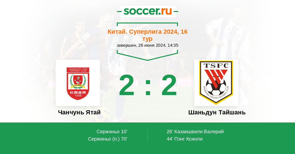 Протокол матча Чанчунь Ятай против Шаньдун Тайшань