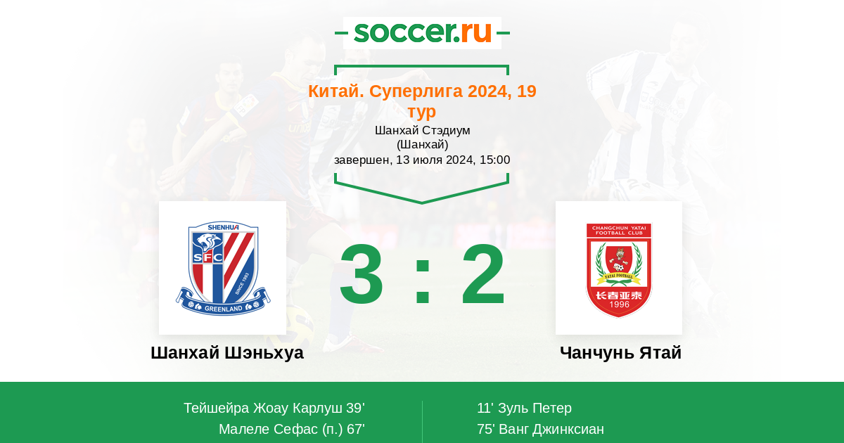 Протокол матча Шанхай Шэньхуа против Чанчунь Ятай