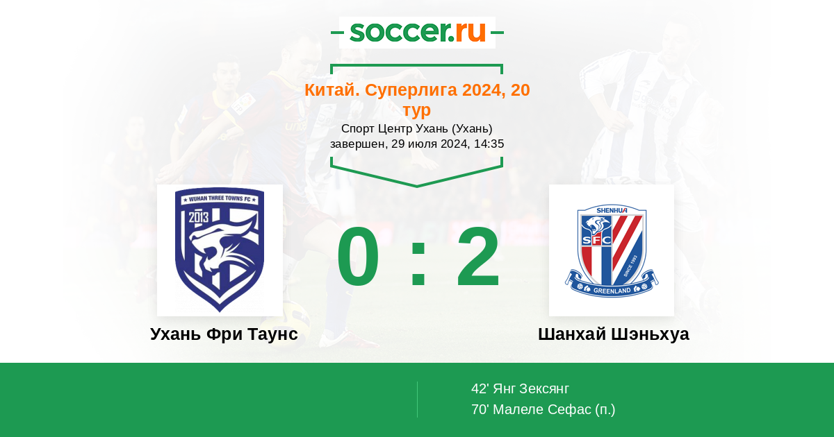 Протокол матча Ухань Фри Таунс против Шанхай Шэньхуа
