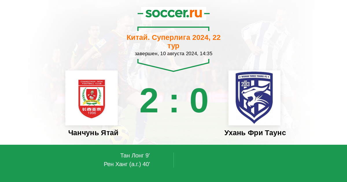Протокол матча Чанчунь Ятай против Ухань Фри Таунс