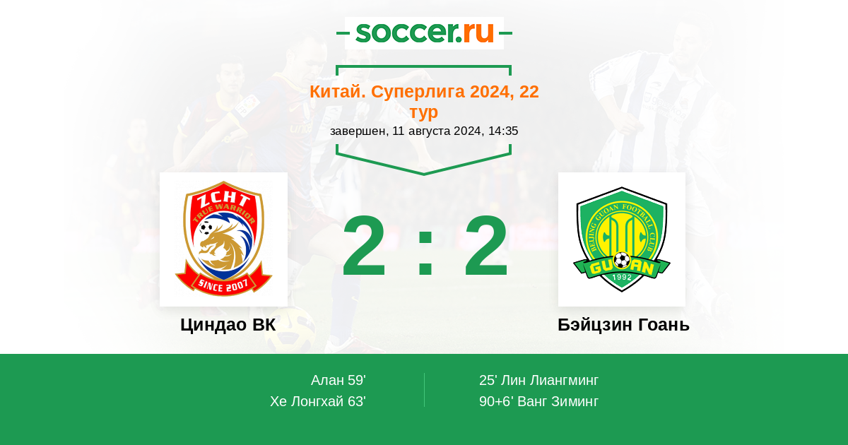Протокол матча Циндао ВК против Бэйцзин Гоань