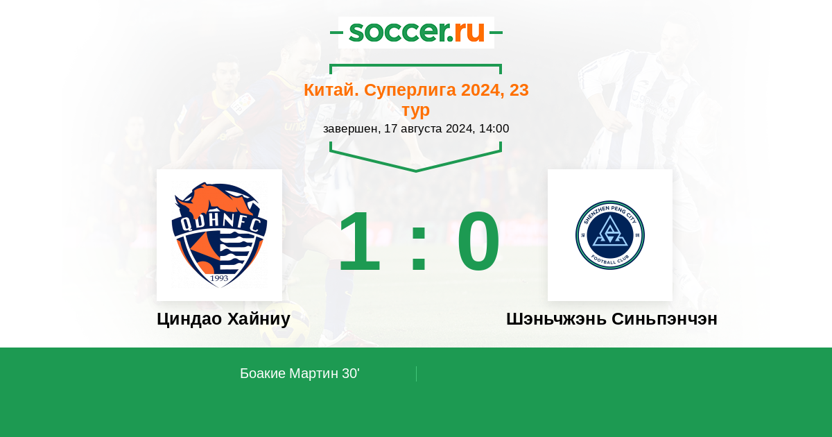 Протокол матча Циндао Хайниу против Шэньчжэнь Синьпэнчэн