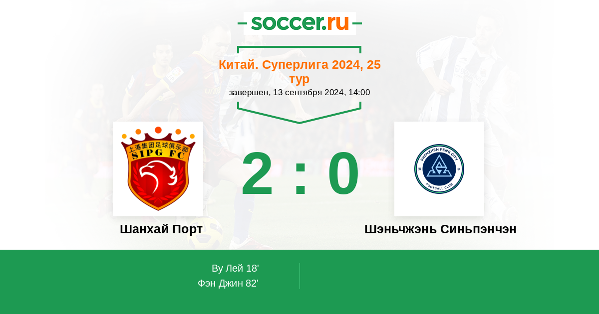 Протокол матча Шанхай Порт против Шэньчжэнь Синьпэнчэн