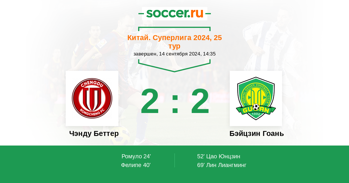 Протокол матча Чэнду Беттер против Бэйцзин Гоань