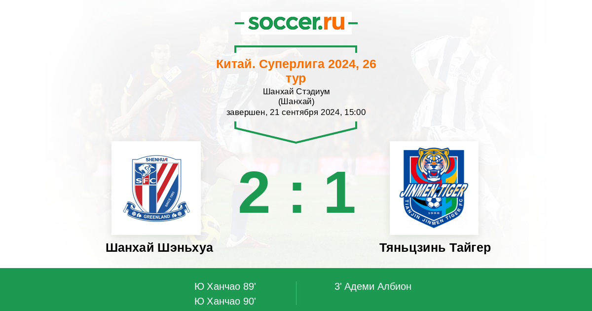 Протокол матча Шанхай Шэньхуа против Тяньцзинь Тайгер