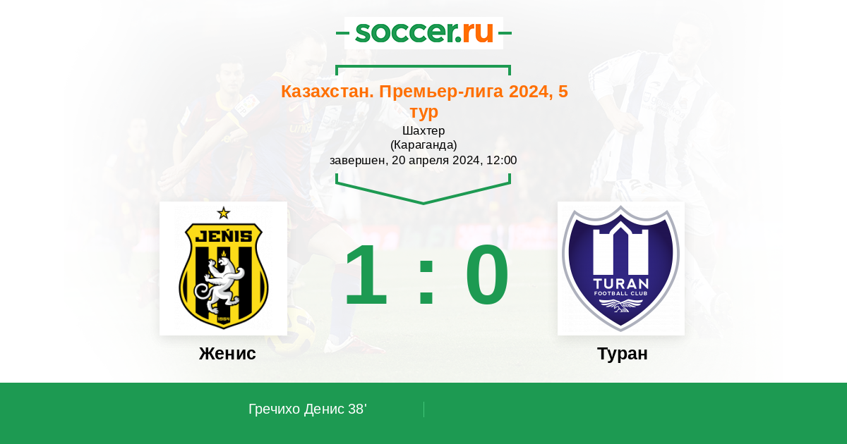 Протокол матча Женис против Туран