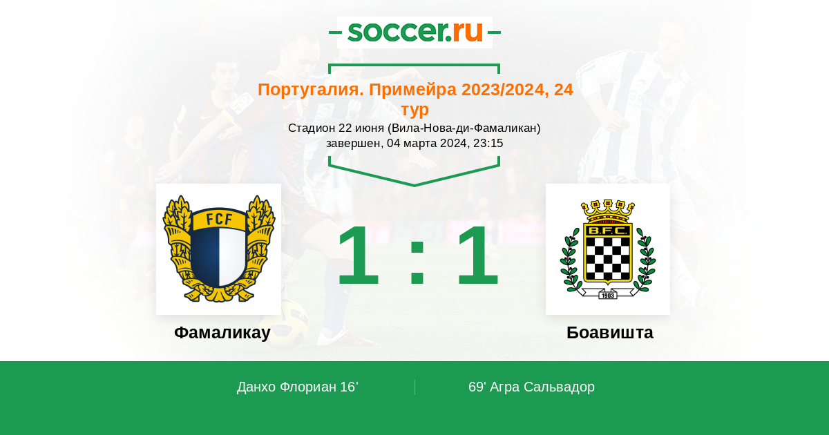 Протокол матча Фамаликау против Боавишта