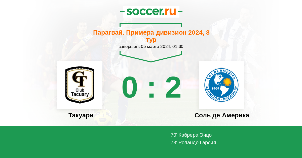 Протокол матча Такуари против Соль де Америка
