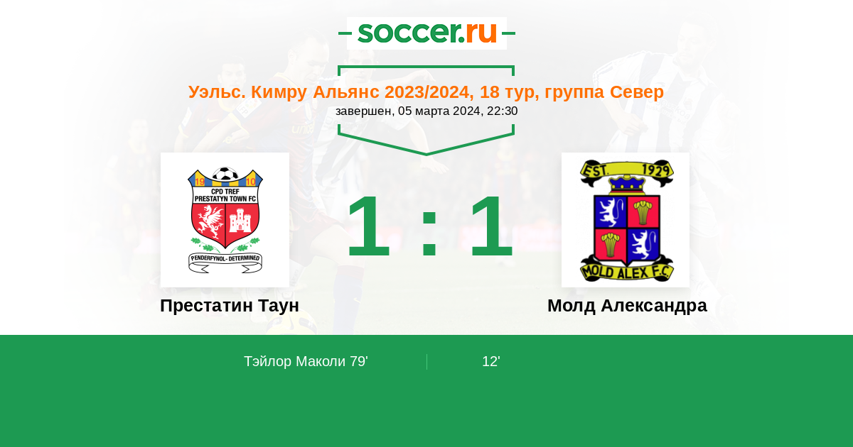 Протокол матча Престатин Таун против Молд Александра
