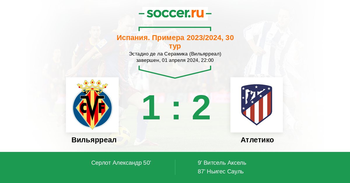 Протокол матча Вильярреал против Атлетико