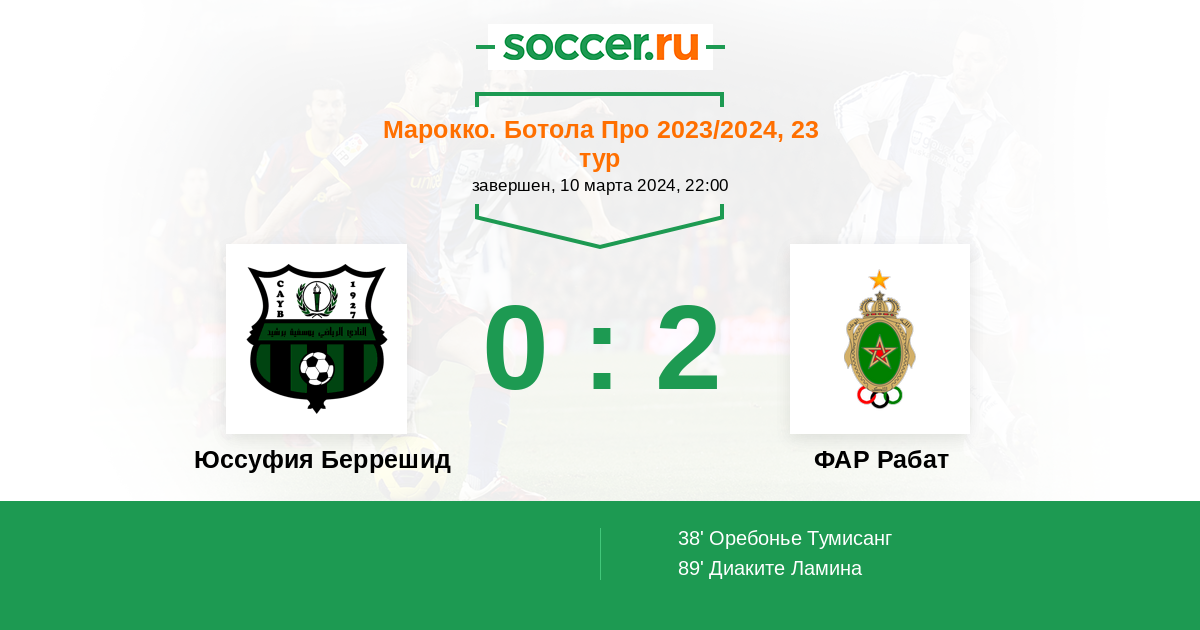 Протокол матча Юссуфия Беррешид против ФАР Рабат