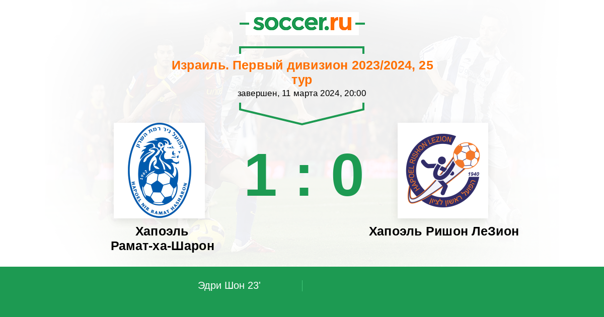 Протокол матча Хапоэль Рамат-ха-Шарон против Хапоэль Ришон ЛеЗион