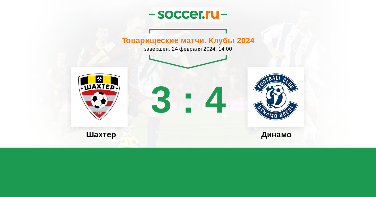 Беларусь. Высшая лига 06.04.2024 Шахтер Логотип футбольный клуб Шахтер (Солигорск) 0:4 Логотип футбольный клуб Динамо (Брест) Динамо