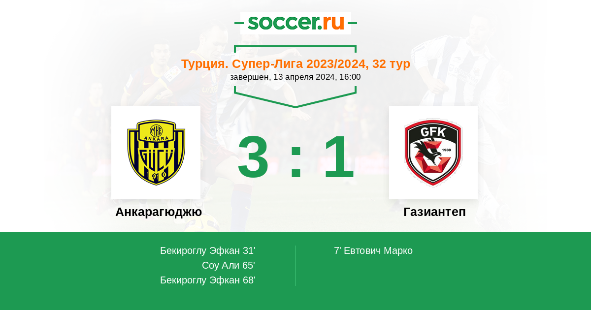 31' (1:1) Бекироглу Эфкан (10) (Моруцан Олимпу (80))