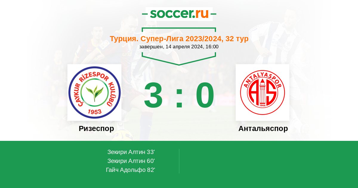 Протокол матча Ризеспор против Антальяспор