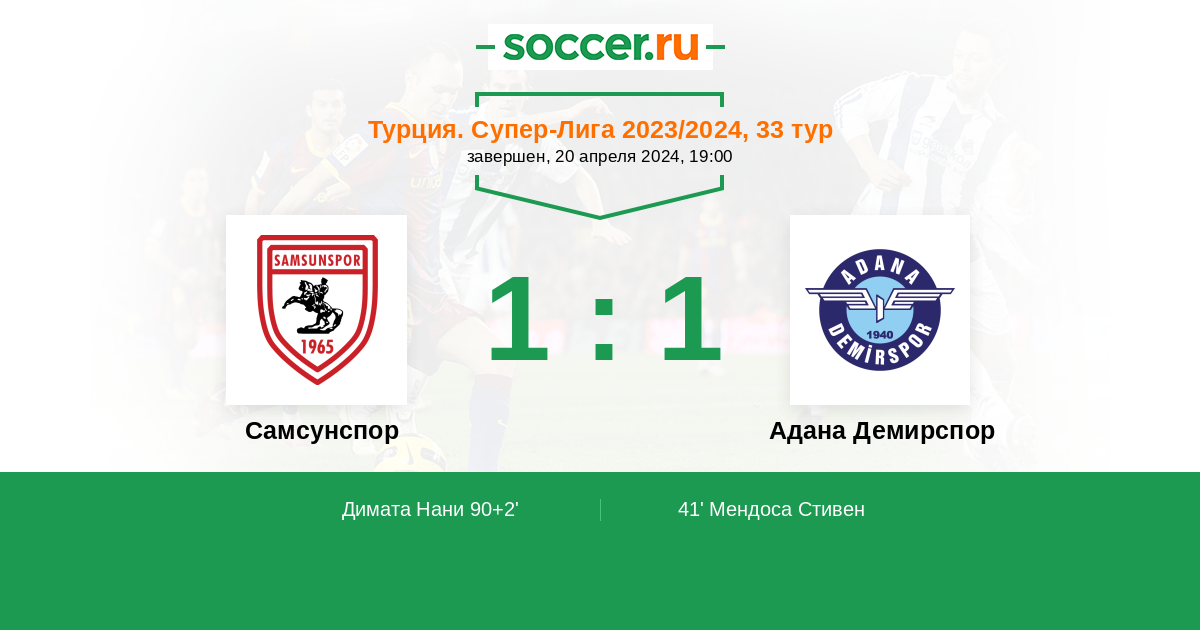 Протокол матча Самсунспор против Адана Демирспор