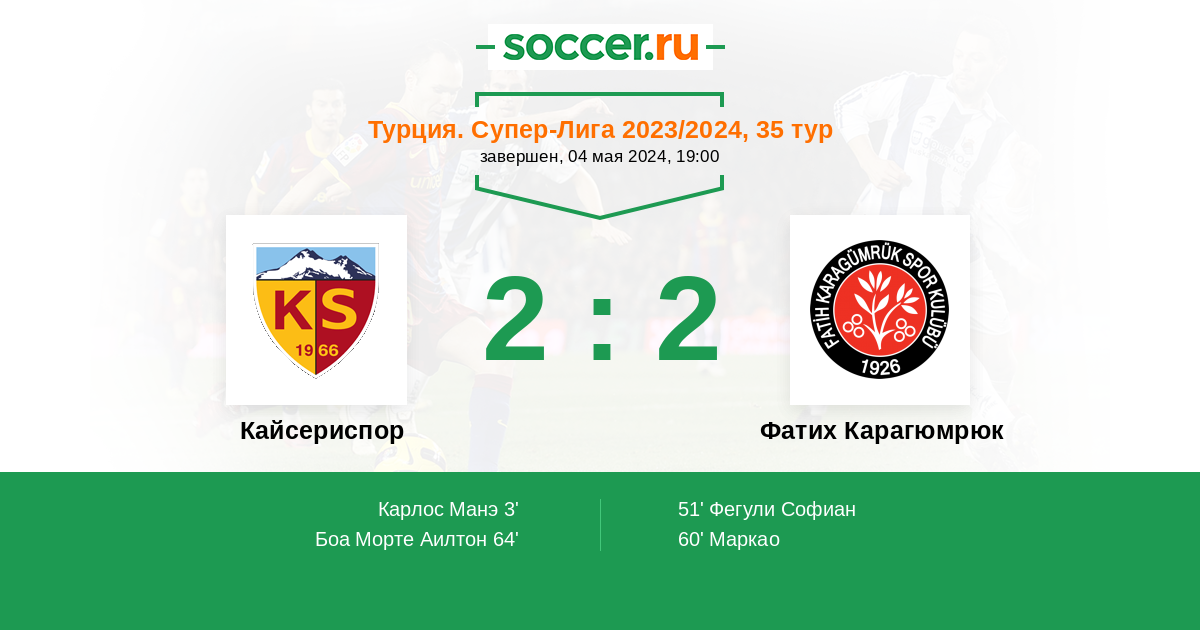 Протокол матча Кайсериспор против Фатих Карагюмрюк