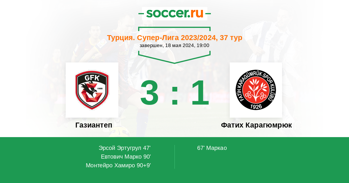 Протокол матча Газиантеп против Фатих Карагюмрюк