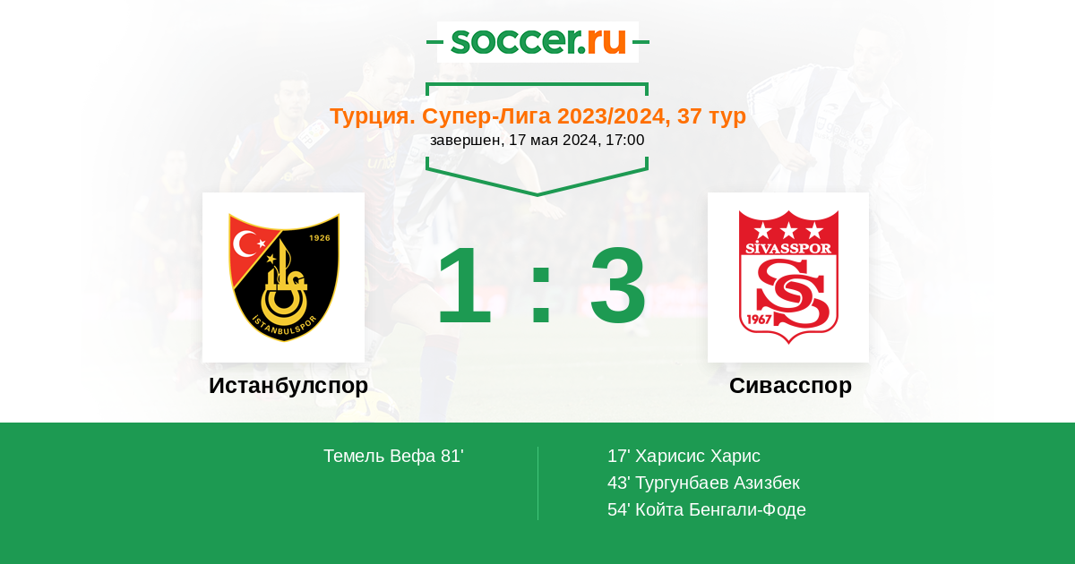 Протокол матча Истанбулспор против Сивасспор