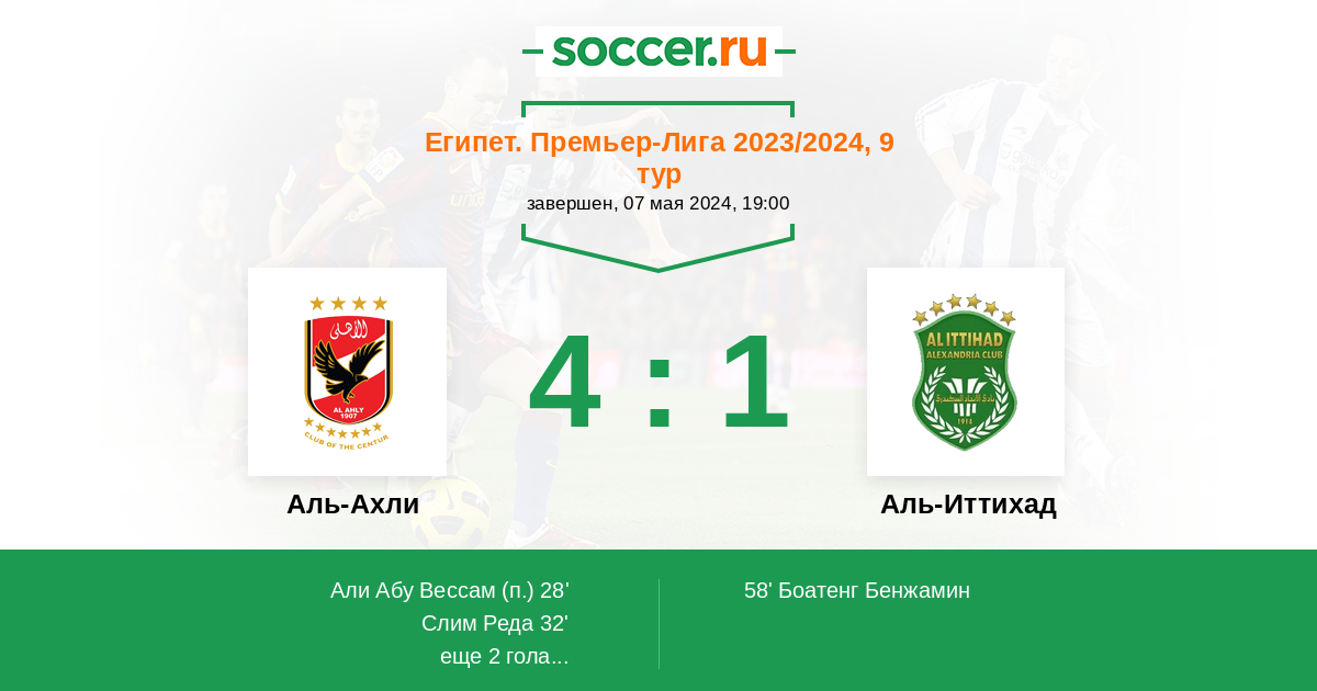 Протокол матча Аль-Ахли против Аль-Иттихад
