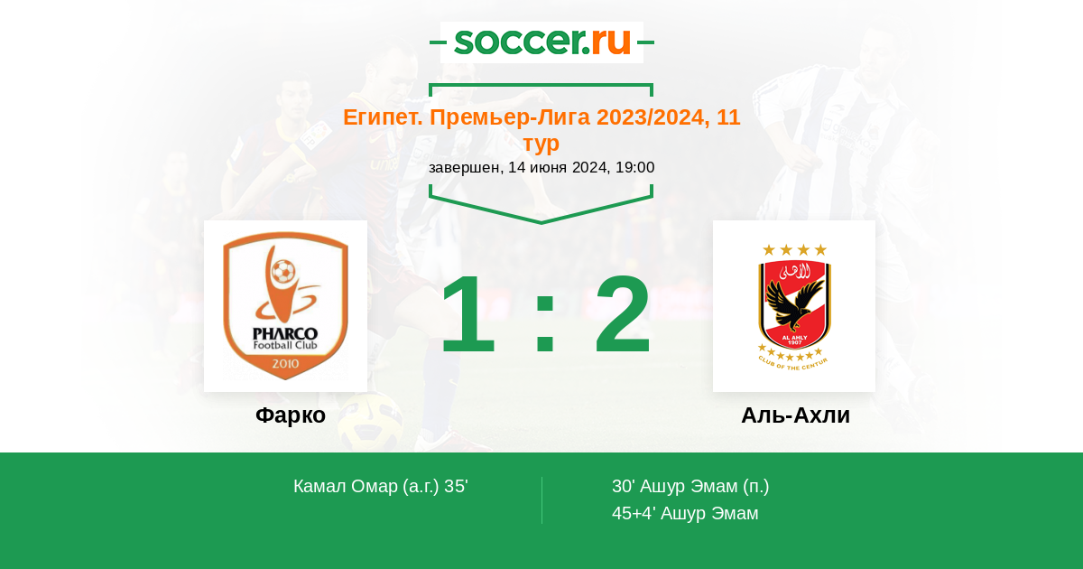 Протокол матча Фарко против Аль-Ахли