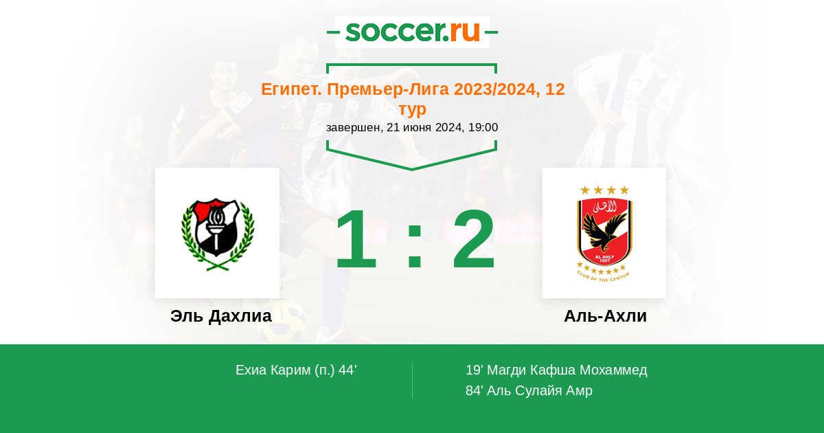 Протокол матча Эль Дахлиа против Аль-Ахли