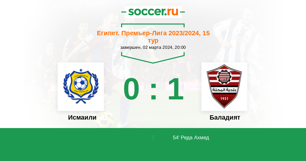54' (0:1) Реда Ахмед (33) (Йехия Алаа (12))