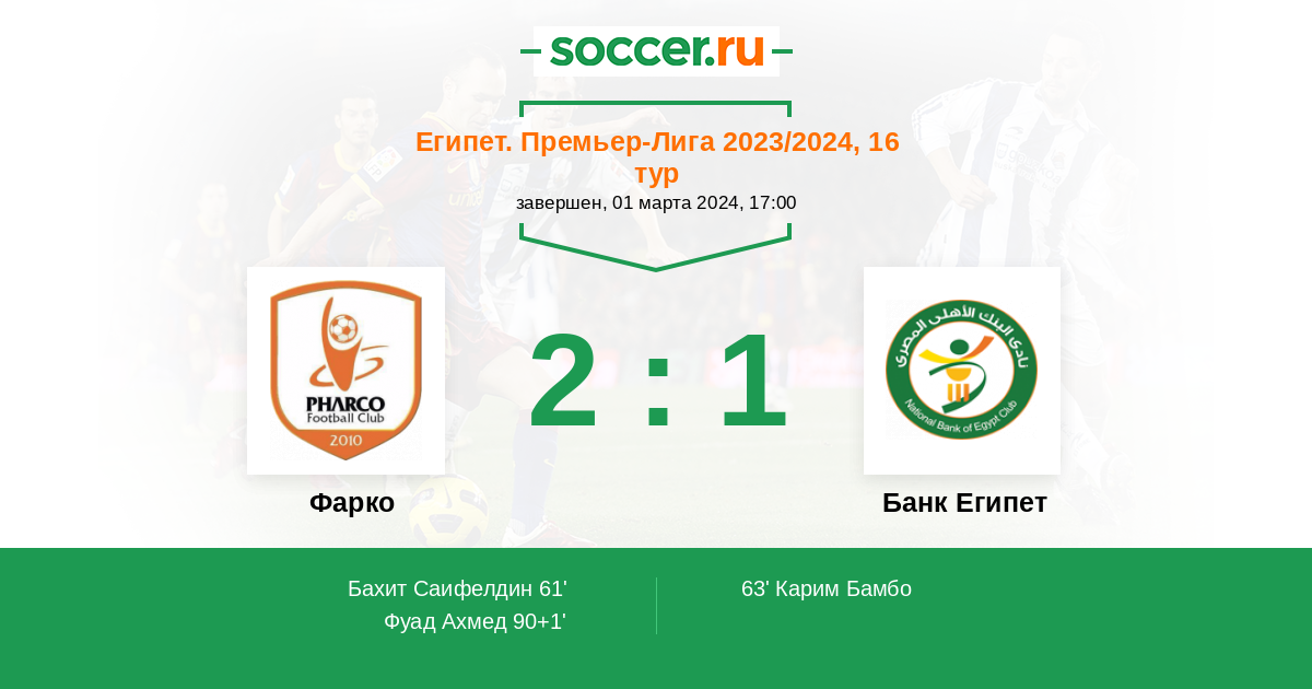 Протокол матча Фарко против Банк Египет