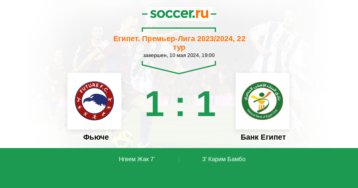 Протокол матча Фьюче против Банк Египет