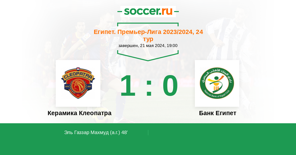 48' (1:0) Автогол Эль Газзар Махмуд (6)