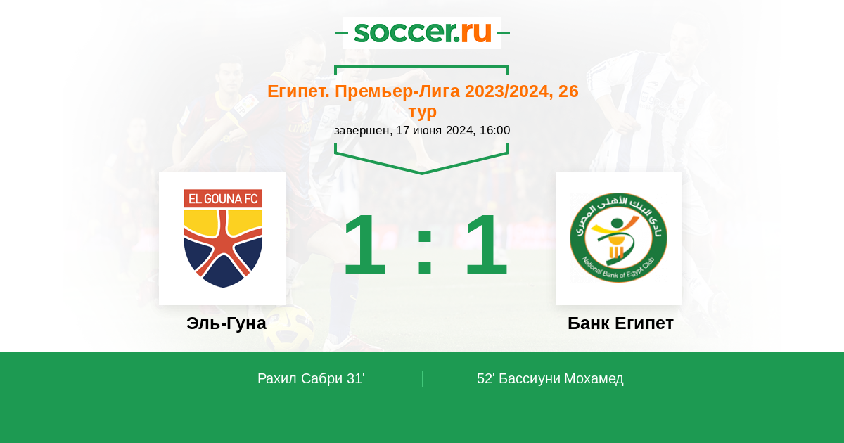 Протокол матча Эль-Гуна против Банк Египет