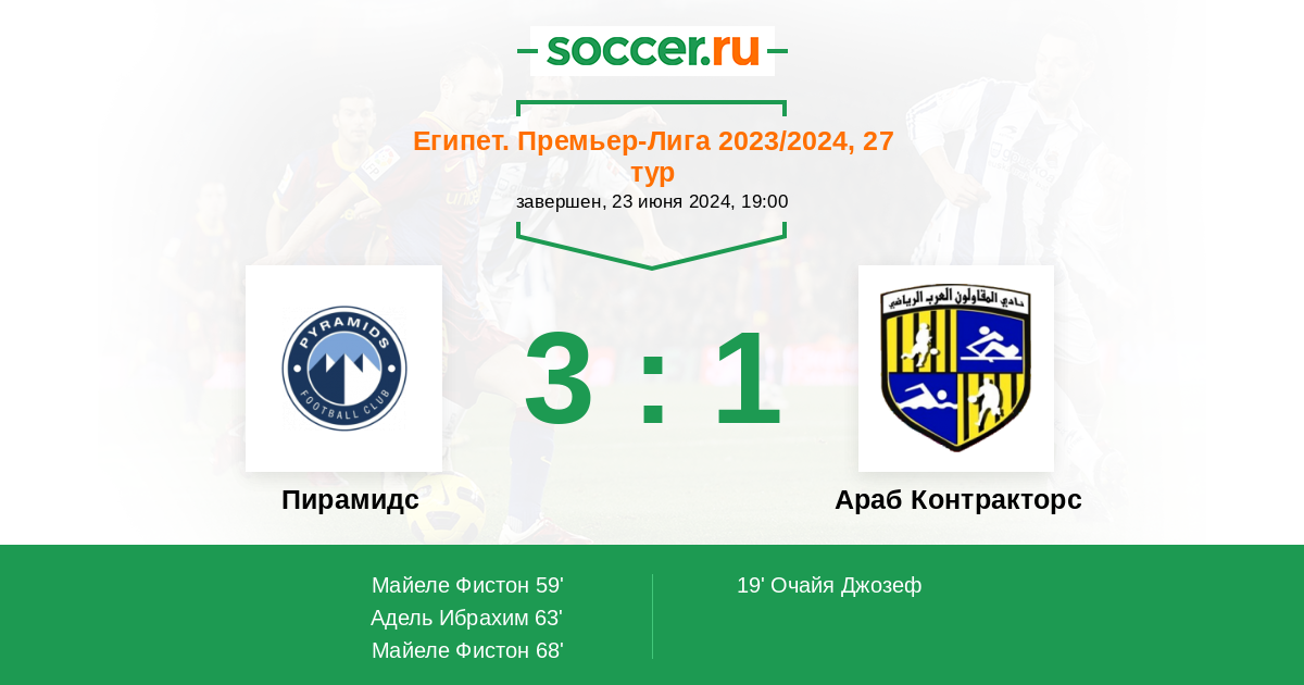 68' (3:1) Майеле Фистон (9) (Адель Ибрахим (30))