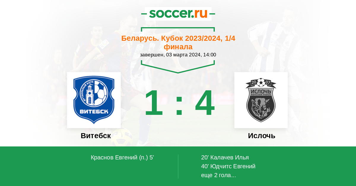 Протокол матча Витебск против Ислочь