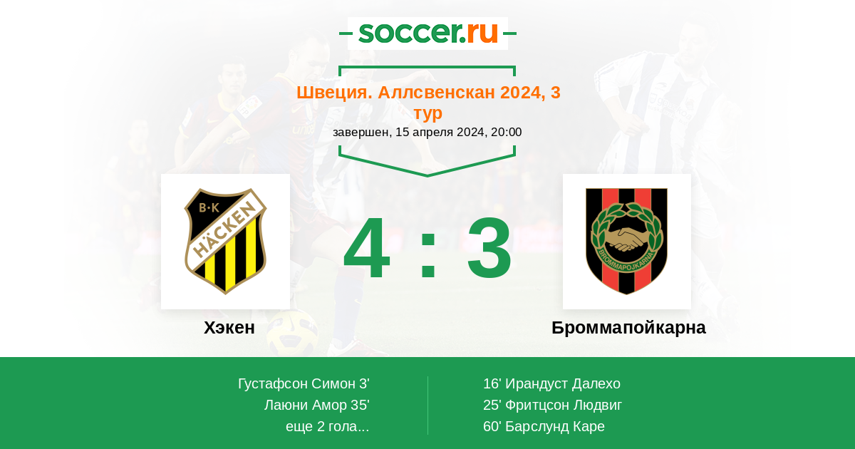 3' (1:0) Густафсон Симон (14) (Линдберг Юлиус (11))