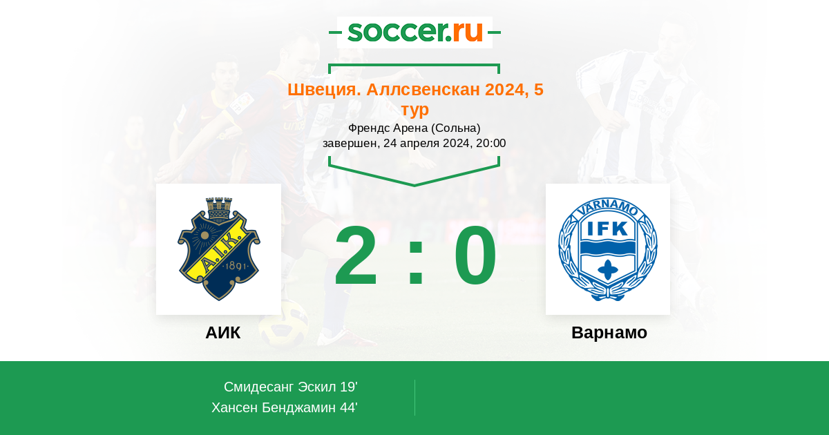 Протокол матча АИК против Варнамо