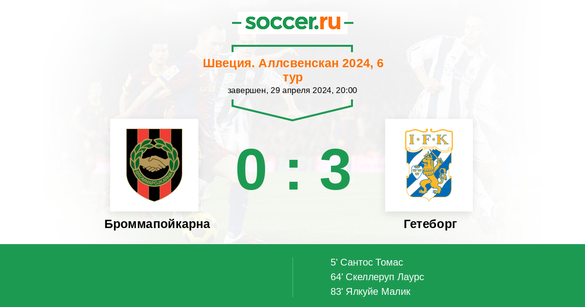 5' (0:1) Сантос Томас (29) (Свенссон Густав (13))