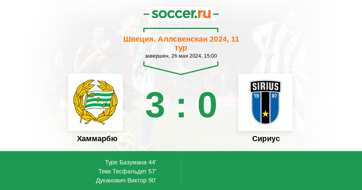 44' (1:0) Туре Базумана (28) (Йоханссон Оскар (11))