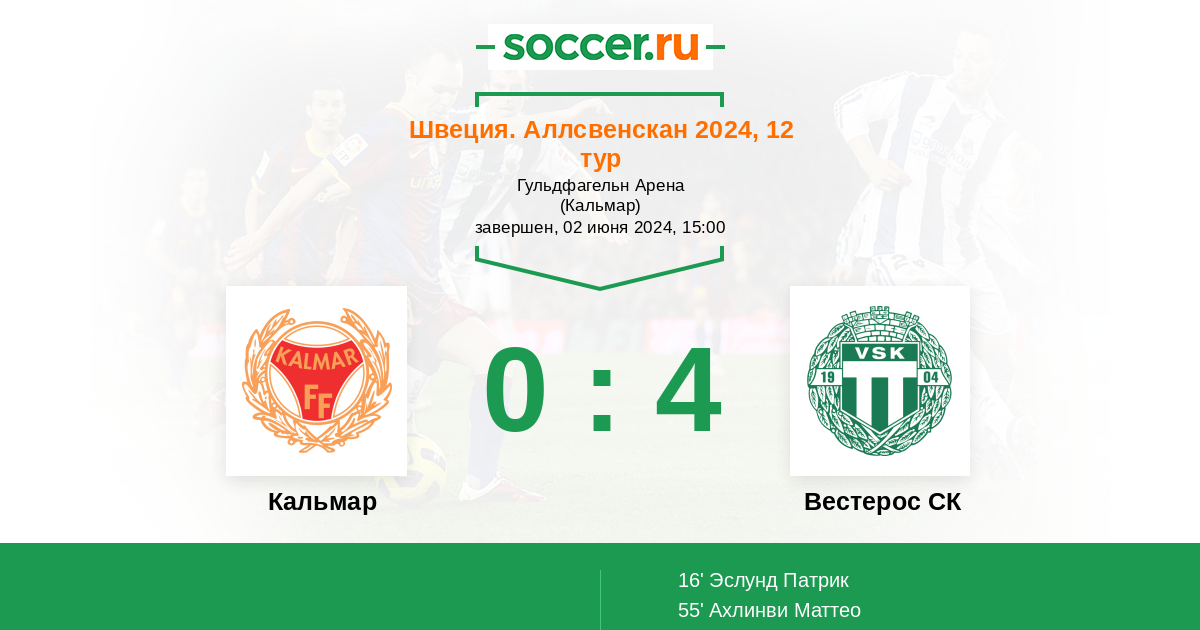 Протокол матча Кальмар против Вестерос СК