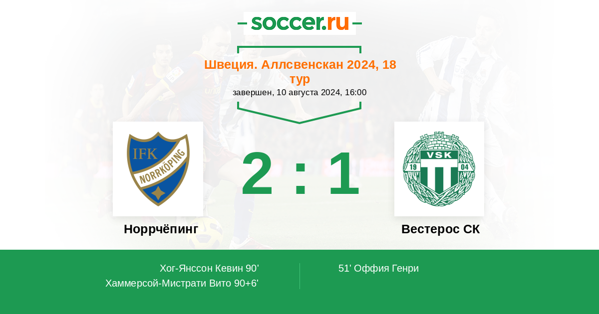 Гол90' (1:1) Хог-Янссон Кевин (25) (Уотсон Макс (19))